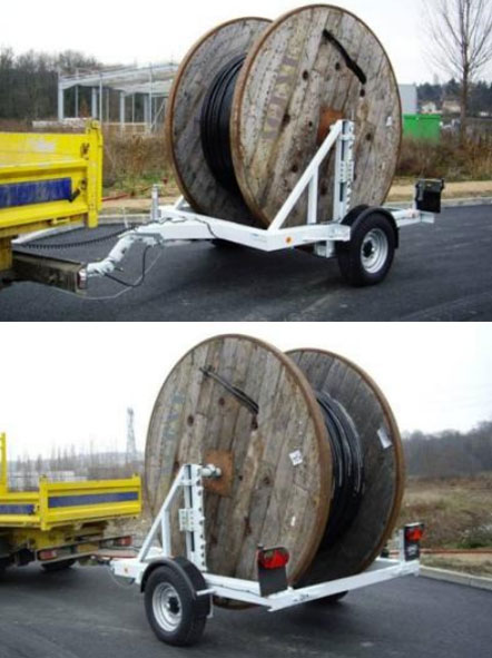 - Levage du touret par 2 vérins hydrauliques simple effet avec ressorts de rappel (compas à gaz) pour un retour rapide en position chargement quand la remorque est vide